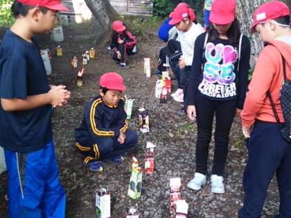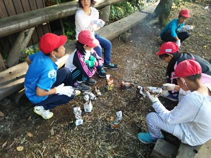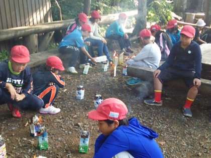 朝食のカートンドッグ(ホットドッグ)は、牛乳パックに火をつけて焼きあがって完成です。