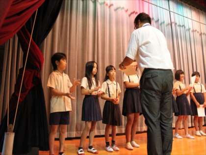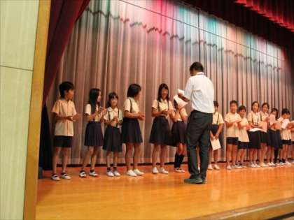 7月に門真スポーツセンターのプールで行われた大阪市の水泳記録会に参加した児童に記録証が授与されましt。校長先生から、運動会や作品展、日々の学習などみんなにとってがんばる目標、努力しなければならないことが、「あなたたちにとってのオリンピックです。」というお話がありました。