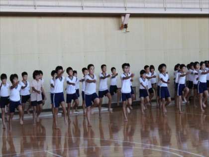 5、6年生は、団体演技の練習でオープニングの場面を練習していました。団体行動でしかもユニークなポーズも取り入れています。写真ではなかなか十分にお伝えできません。