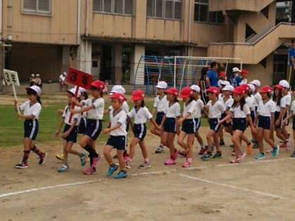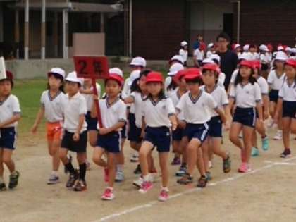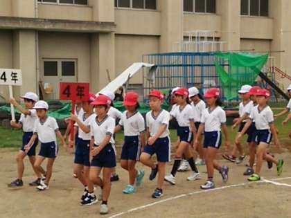 4年生、3年生、2年生も元気よく行進できていました。横の人と列をそろえたり、コーナーをうまくまわるとか、いろいろあるのですが、がんばっていました。