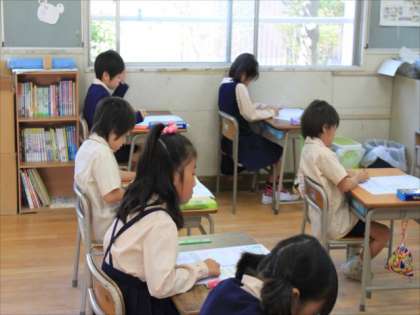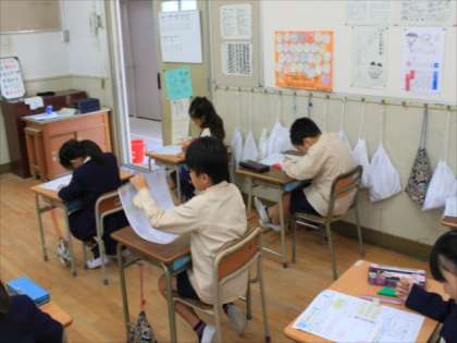 2−2では、算数のテストをしていました。「長方形と正方形」という学習のまとめテストです。静かななかで鉛筆の音だけが聞こえる2−2でした。