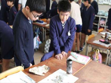 ア、イ、ウのわりばしの燃え方を観察しました。