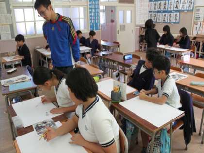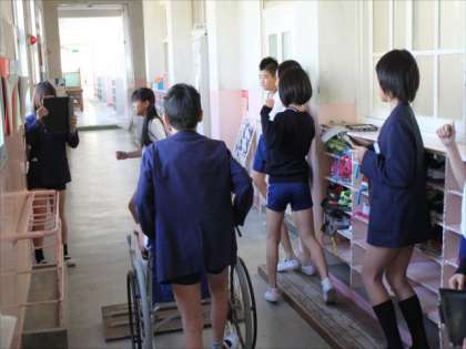 5年生が、1学期に行った「車いす体験」の絵画を制作し始めました。作品展にも出品するそうです。構図や人の動きを考えるためにタブレットも使っていました。