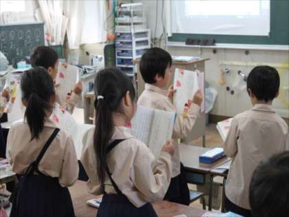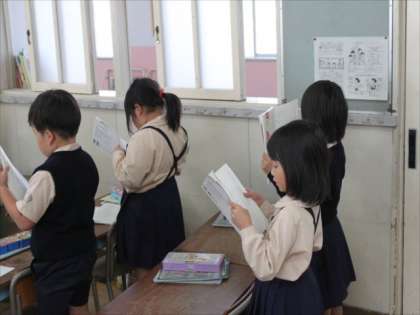 しっかり声を出して音読できるように練習しています。口をしっかりあけて、正確に読めるように何度も練習しています。