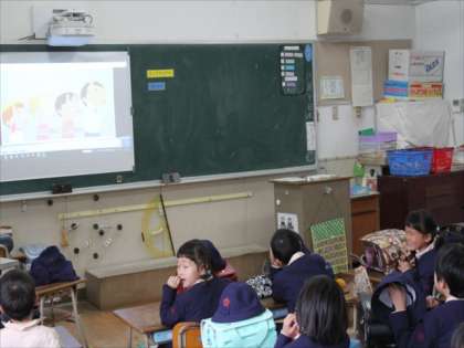 1年生も、耳で聞いた音声をそのまま表現しながら発語しています。映像や音楽に敏感に反応していました。