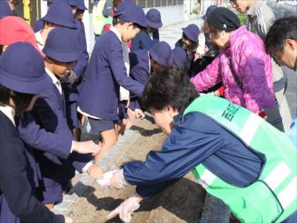 講習会を終えて、地域のボランティアの方となにわ筋沿いの花壇に花の種を植えました。