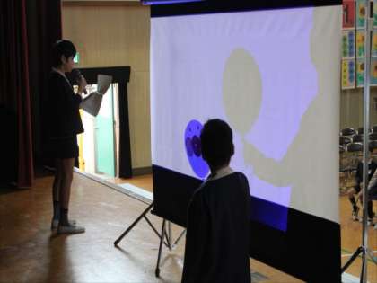 今朝の児童集会は、影絵当てクイズでした。シルエットを見て3択で当てます。「ボール」、「月」「アンパンマン」のうちどれでしょう。みたいな感じです。集会委員会の児童と反対側からは、シルエットしかわからないので。「答えはアンパンマンです」と発表があると、当たった児童は大喜びでした。