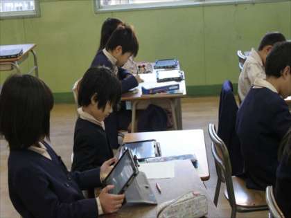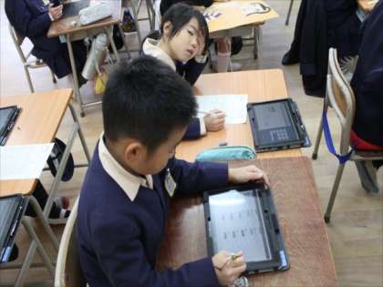 他の子はタブレットでデジタルドリルの問題にチャレンジしていました。文章題で九九を使う問題が次々に出てきます。