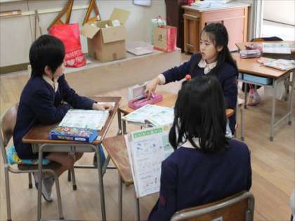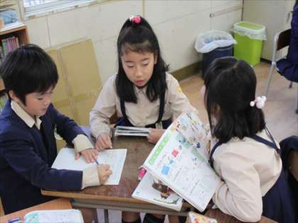 2−2では、生活科で手作りのおもちゃをつくる計画を相談していました。もちろん1組も手作りおもちゃを作りますし、2組もタブレットを使った学習をしています。デジタルと手作りと両方の良さをきちんと学ぼうと考えています。
