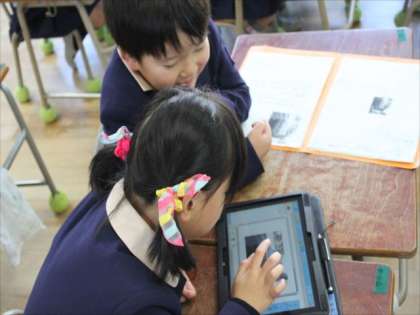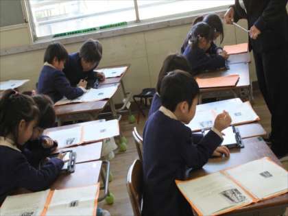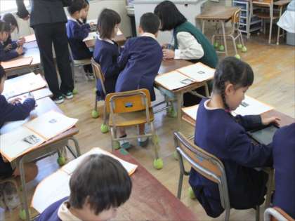 12月3日本校でICT公開授業、学習参観、竣工式、作品展が開催されました。ICT公開授業は、全学級で実施されました。市内の先生方40名以上を含む約300人以上の方が、来校されました。