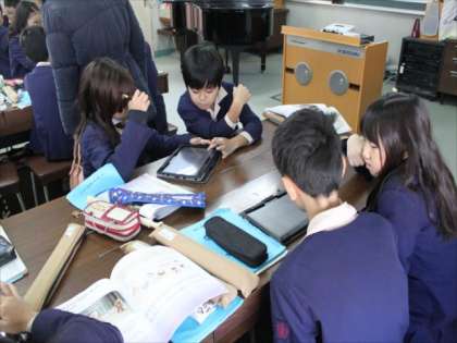 写真は4−1音楽「日本の楽器に親しもう」です。