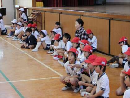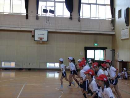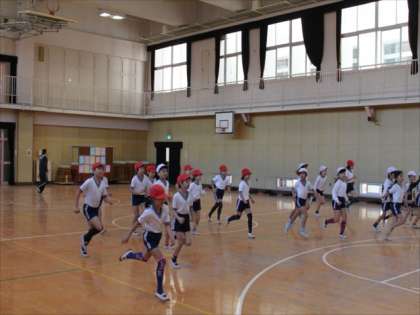 3年生がシャトルランにチャレンジしていました。20mを往復して走り、どれだけ長く走れるかをテストします。音楽に追わせて走りますが、「ドレミファソラシド」の音楽がだんだんはやくなっていきます。ラインに2回続けて間に合わなくなったら、終了です。