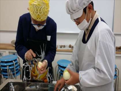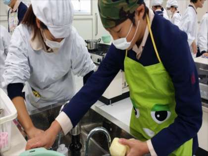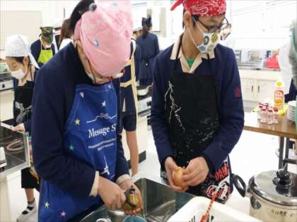 6年生の家庭科調理実習「朝食づくり」です。メニューは、「ジャーマンポテト」「目玉焼き」です。声をかけあって手際よく作りました。