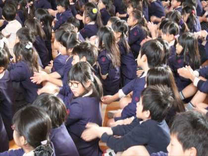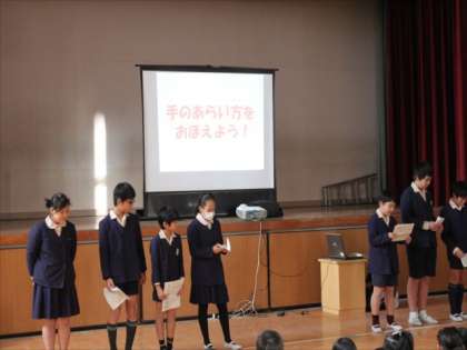 そうじのあとやあそびのあとなど手洗いが十分にできていないことがわかりました。正しいてあらいについて、健康委員会の子どもたちにおそわりながらやってみました。