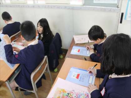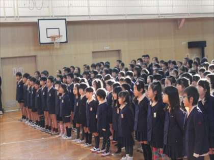 1月10日始業式です。冬休み中大きな事故やけがもなく、講堂に児童が集合しました。新しい目標に向かって元気に出発しました。1−1(写真下)は、さっそく新しく3学期に使うドリルに目を通しながら、名前を書いていました。