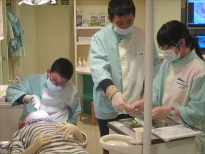 ふだんお世話になっている人と立場をかえて体験してみるとまた違った思いも感じるでしょう。写真上(歯科医師体験)写真中(銀行員体験)