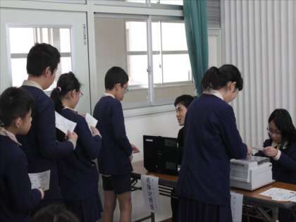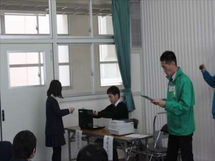 西成区役所の選挙出前授業がありました。20才から18才に選挙権も引き下がりました。先日は税に関する学習もしました。税金の使われ方や自分たちの将来に大きく関わる選挙について学習しました。実際に投票の体験もしました。