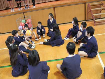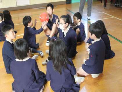 「ゴロゴロ」でボールを順番に回していき、「ピカピカ」で逆回りになります。「ドン」の時にボールを持っていた人がアウトです。