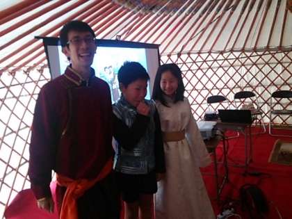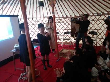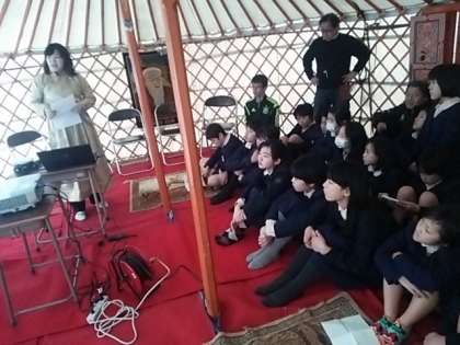 ゲルの家主さんとモンゴルの方にご来校頂いて、モンゴルのくらしについて色々と教えていただきました。