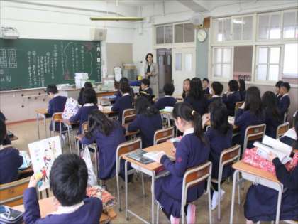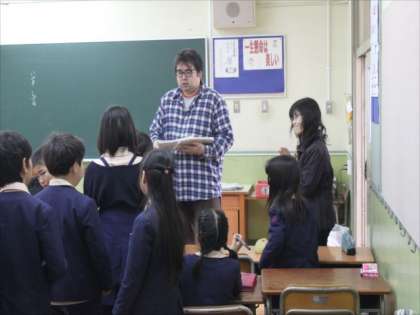 続いて校長先生から、担任の先生や担当の教職員の発表がありました。写真は学級での様子です。写真上6−1写真中5−1写真下4−1です。