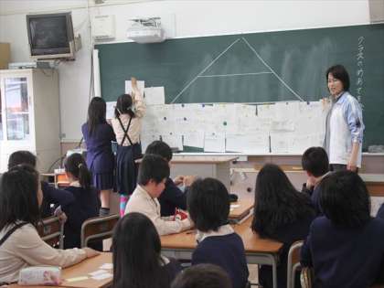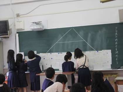 黒板に、たくさんはられた目標の候補です。みんなで相談して、どんな目標になったのでしょうか?楽しく明るい学級になることでしょう。