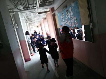 今日は、雨が降っていたのでなかよし教室の前から保健室、白梅ルーム(会議室)あたりまで全校児童が、集合しました。ハンカチをいつももつこと、放送や先生の指示を静かに聞くことを確認しました。