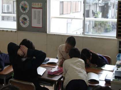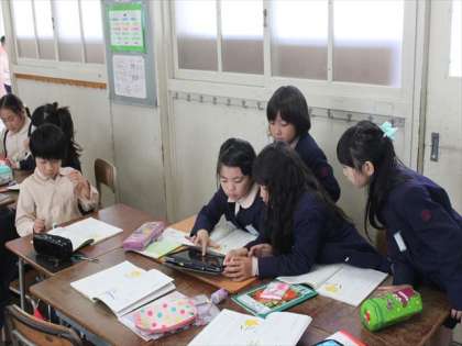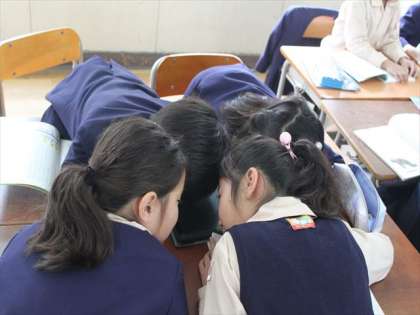 なぜか。みんなが集まって耳を傾けています。仲がいいということはすばらしいなあと思います。土曜授業で、音読練習の成果を聞かせてくれるのでしょうか。