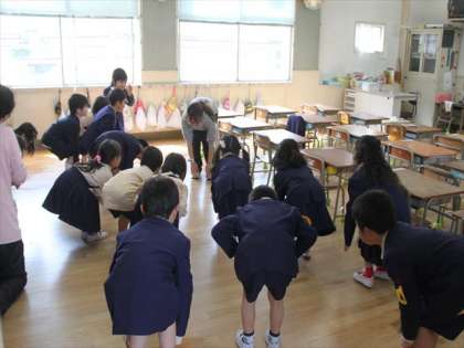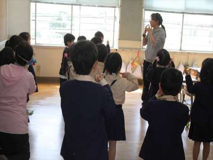 1−1では、先生が「ヘッド、ショルダー、ニー トウ・・・」と唱えながら、子どもたちが同じように唱えながら、ゲームを楽しんでいました。覚えるのが速い!という感じです。