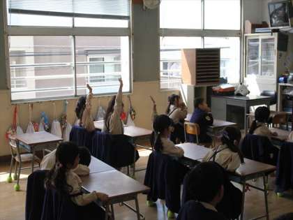 1−2では、学級の目標を決めていました。目標というのは、むずかしいので「こんなクラスになったらいいな」というかんじで話を進めていました。「あかるくげんき」「きれいながっこう」「かわいいがっこう」・・・など、1年生なりに考えていました。「仮面ライダー エグゼイド」もありました。考えてみるとなかなか深いのです。「正義」「いじめをゆるさない」とか・・・