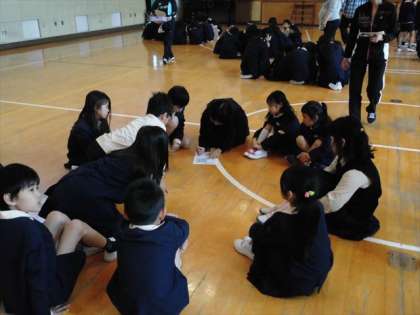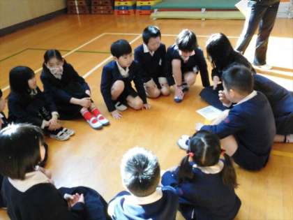 たがいに協力することや上の学年の児童が、低学年に教えたり、おたがいの気持ちを考えたりすることができるように、異なる学年が同じ班で活動するようにしています。