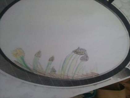いろいろ観察した自然なのですが、一つだけ絵にしました。細かいところまで良く見ている子、全体のふんいきがよく表されている子、いい感じでした。
