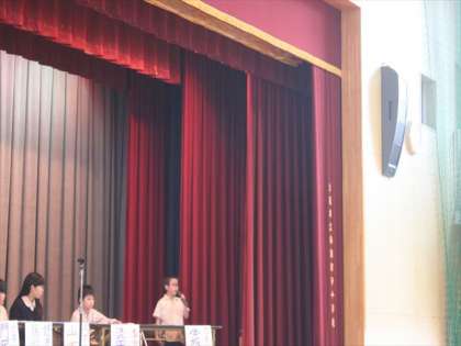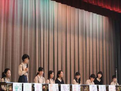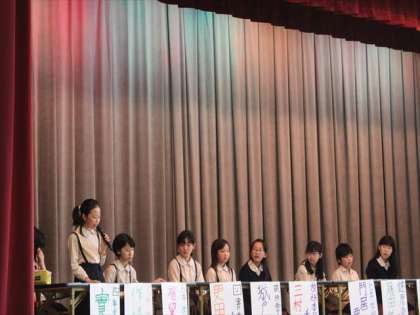 児童集会で今年度の代表委員会の発足式がありました。各委員会の代表が力強くあいさつをしました。とても頼もしいメンバーでした。