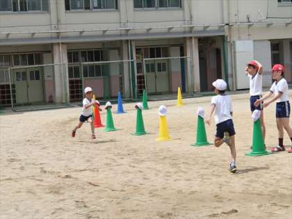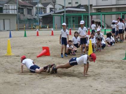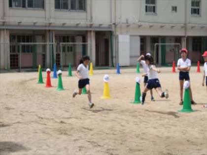 スタートの敏捷性、中間走、コーナー、スピードの持続といろいろがんばりどころがあります。「同時!」も続出しました。もうすぐスポーツテストもあります。期待していますよ4年生のみなさん!