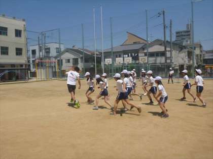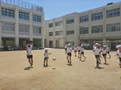 セレッソのコーチ4人をお招きしてのサッカー教室の続報です。いよいよ3時間目は、コーチ4人対子ども大勢のゲーム対決です。「勝てるぞ!」子どもたちの意気込みでした。