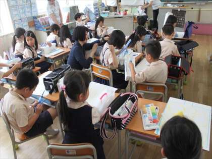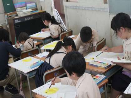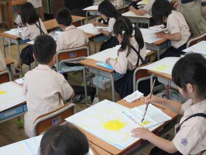 2年生が初めて水彩絵の具の使い方を学習しました。