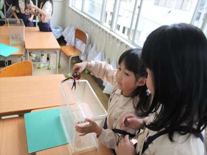 はさみがこわくて触れません。触ること自体こわい子もいました。でも少しずつ慣れてきて触れる子も出てきました。これからなまえをつけて飼っていくなかで触れるようになるでしょう。