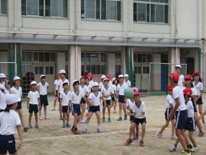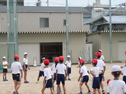 1年生から6年生まで混ざっているので、高学年が低学年を当てるときは、利き手でないほうで投げるとかルールを工夫しました。
