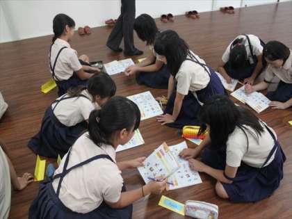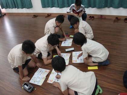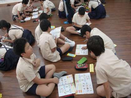 子どもたちはペアを組んで「Can you 〜」「Yes,I can. No,I can’t.」のフレーズの練習をしていました。