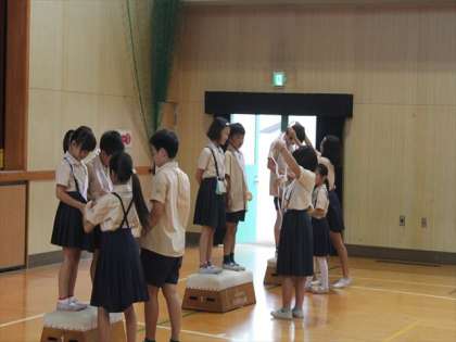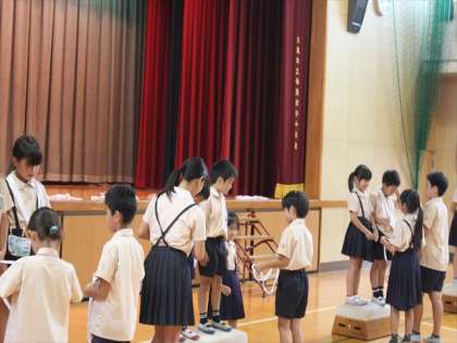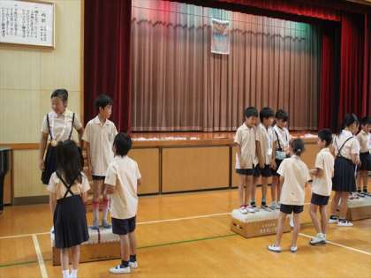 次は50m走です。1年生男子は10.9秒女子は11秒、6年生男子は7.4秒女子は7.7秒が最高記録でした。4年生男女も良い記録が出ました。