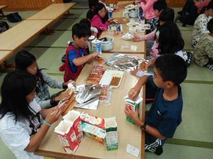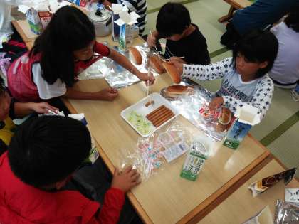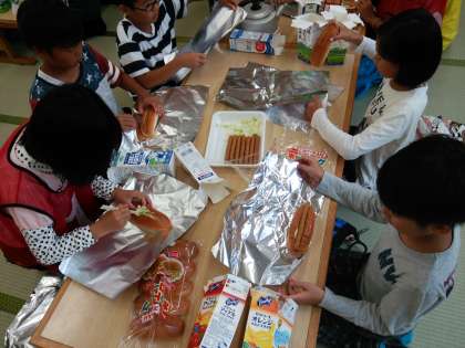 アルミホイルで包んだパンを牛乳パックに入れて燃やします。
