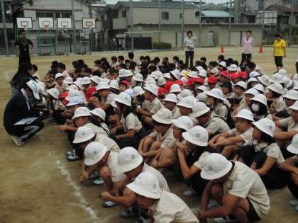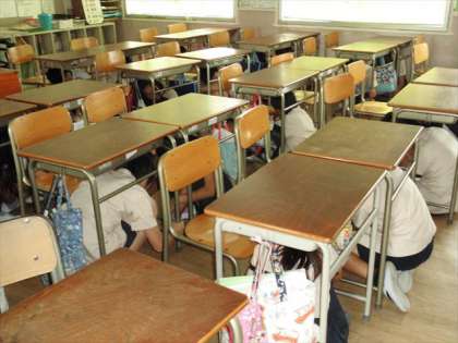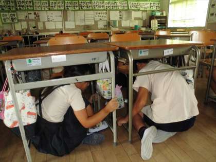 揺れがおさまると運動場に一旦避難しました。そして、人数の確認やけがの確認をして、「大津波警報」がでたという想定に備えて、3階に避難しました。