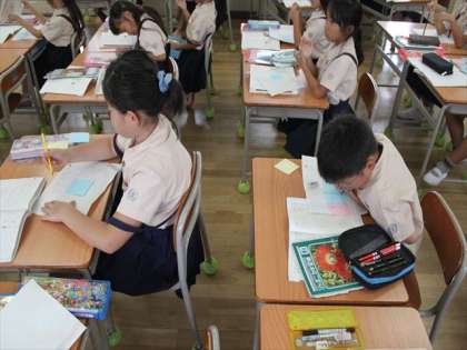 2年生が国語で「たからものをしょうかいしよう」という学習をしていました。自分のたからものを、友だちにお話ししてしょうかいするという学習です。