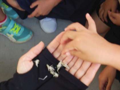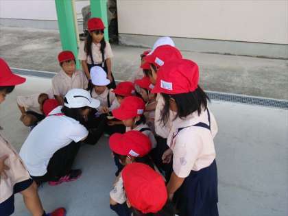 1−1で生活科の学習をしていました。「バッタが脱皮しました。」と教えてくれました。「えさはいらないの?」と聞くと「ぬけがらだからいりません。」としっかり言われました。失礼しました。