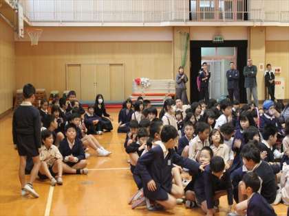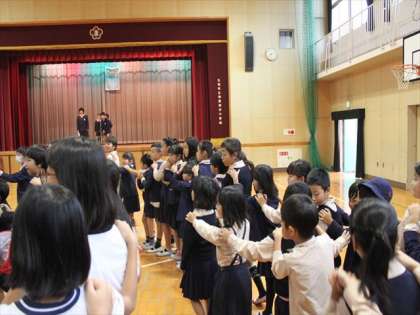 今朝の児童集会は、「じゃんけん列車」でした。最後には幾重にも列車が重なって、つながっていきました。最後に勝ったチャンピオンは3年生児童でした。