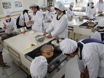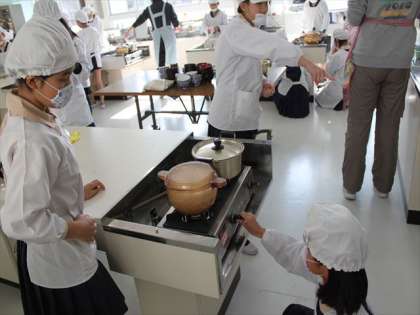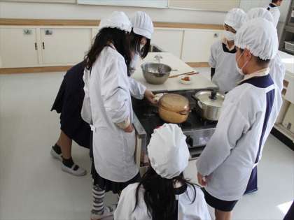 5年生が家庭科の蝶理実習をしました。メニューは「ごはんとみそしる」です。