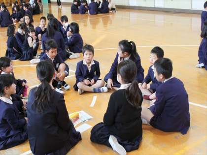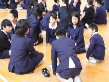 例えば「趣味はラーメンの食べ歩き」「めがねをかけています」「身長は185cmです」さてだれでしょう?みたいな感じの先生をグループで相談して答えます。