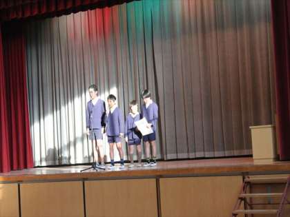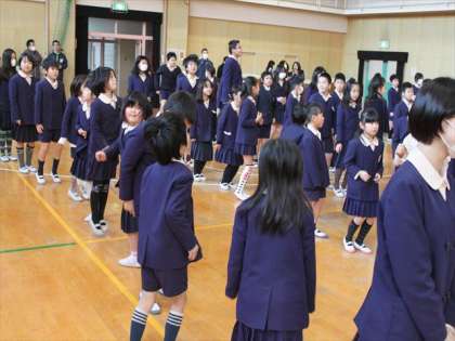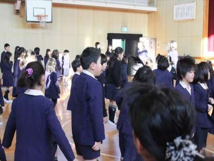 今朝の児童集会は「船長さんのめいれい」でした。集会委員が「立って!」「ジャンプして!」などの命令を出します。でもその命令は「船長さんの命令です。」がついていなければ「立って!」はいけないのです。