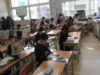 1−1と2−1の読書タイムです。毎週金曜日の朝が読書タイムになっています。子どもたちの「本離れ、活字離れ」が課題となって久しいです。「読書は心の旅」という人もいます。少しでも本を手に取る時間を増やせたらと考えています。
