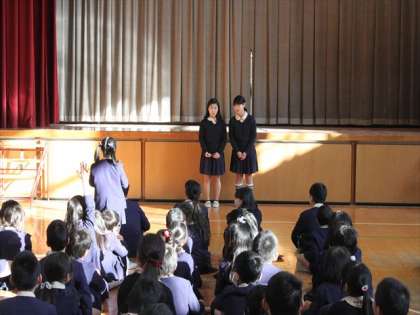 ビンゴのあと、環境委員会の児童が「ていねいにそうじをしましょう。」と呼びかけたり、児童会代表が「最近、他の府県で登下校で交通事故があったので、交通事故に遭わないためにどうしたらいいか、近くの人と相談しましょう。」とみんなで考えたりしました。