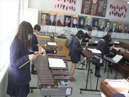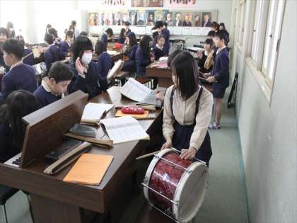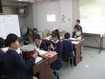 4−1が、音楽室で「チキチキバンバン」の合奏をしていました。2月21日の学習参観で披露するそうです。